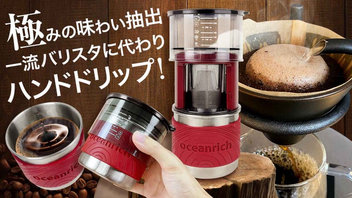 「oceanrich」は、給湯サーバーがくるくる回って自動でコーヒーを抽出する電動コーヒードリッパー。バリスタがハンドドリップで淹れたような味わいを再現したという。
