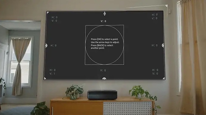 画面補正は8点キーストーンで自動調整。瞬時に壁や画面に合わせることが可能。