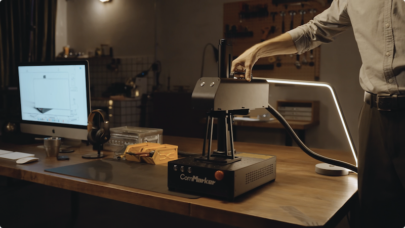「ComMarker B4」は、金属・プラスチック・革など幅広い素材へ好きな文字やデザインを彫れるレーザー彫刻機。B4用紙程度の面積があれば設置できるコンパクトな設計で、自宅でも本格的なクラフトが楽しめそうだ。