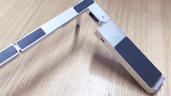 スタンドの高さは、3段階で調整可能だ。アルミニウム合金製で、重さは399g。畳むと153×56.7×33.1mmほどの大きさになる。メガネケースに入る程度だというから、簡単に持ち運びできるだろう。