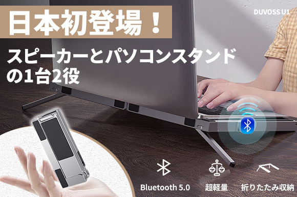 「DUVOSS U1」は、Bluetoothスピーカー内蔵の折りたたみ式パソコンスタンド。