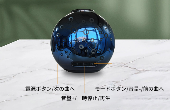 スピーカー部分は磁気浮上によって空中に浮く。回転させながら音楽を流すこともできる。聴覚だけでなく視覚でも音楽鑑賞を楽しませてくれる。
