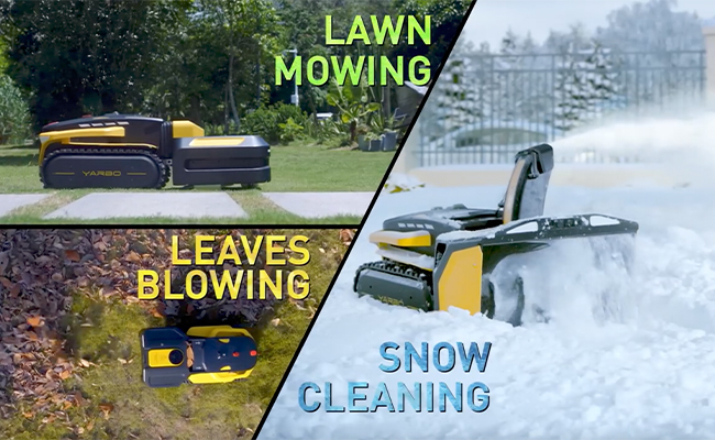 「Yarbo」は芝刈り・落ち葉の掃除・除雪をこなしてくれる庭お手入れロボット。モジュールを用途によって交換することで、一年中活躍してくれます。