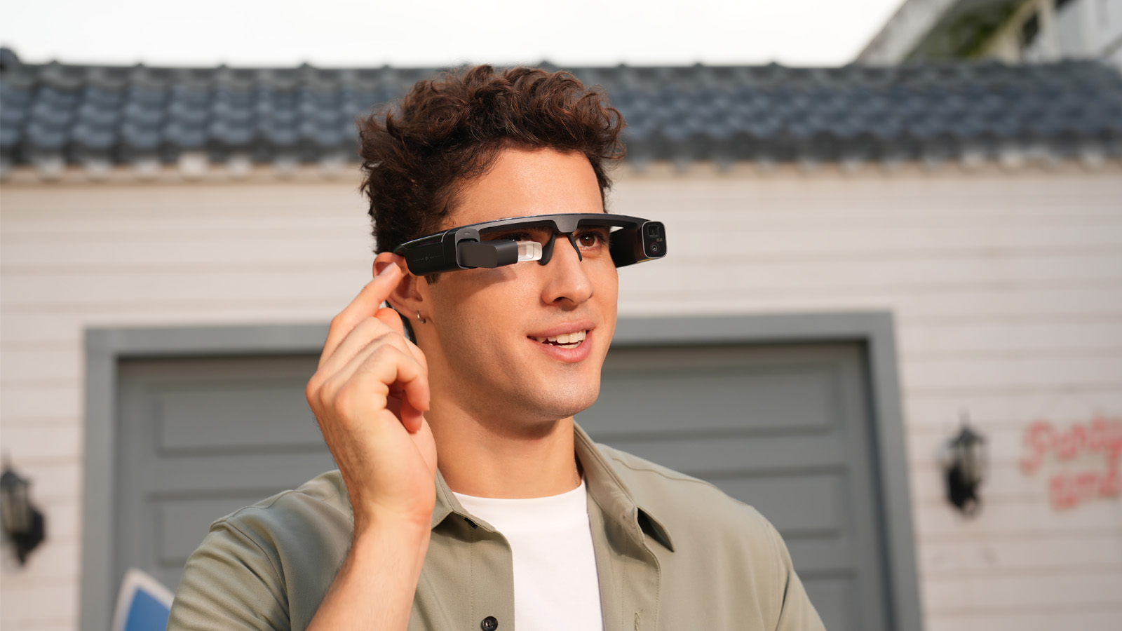 メガネのつるにデュアルカメラを搭載。つるをタッチするだけで写真を撮れるうえに、15倍までのズーム機能があるので、決定的な瞬間を逃さず綺麗に撮影できる。また、音声認識にも対応しているので、自転車の運転中など両手がふさがっている場面でも撮影を始められる。