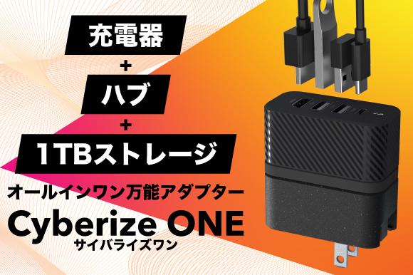 「Cyberize One」はPCの充電器・USBハブ・ストレージが一つになった商品。周辺機器や配線などをまとめ、デスクをすっきりと整頓できるだろう。