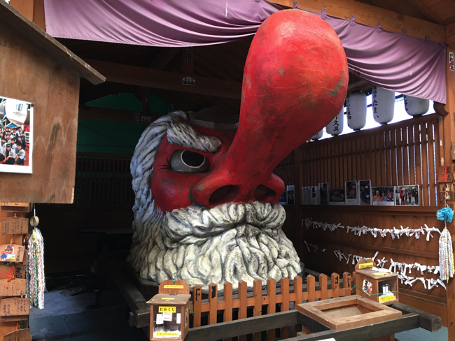 別府銀座商店街に並行する「やよい天狗通り」は、通りの中ほどに鎮座する火伏せの守護・大天狗の神輿が名の所以の商店街。