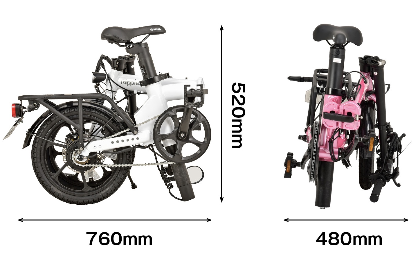 特別な道具を使わずに車体を折りたためて、折りたたんだ際に必要なスペースは76cm×48cm×52cmで室内保管がしやすい。
