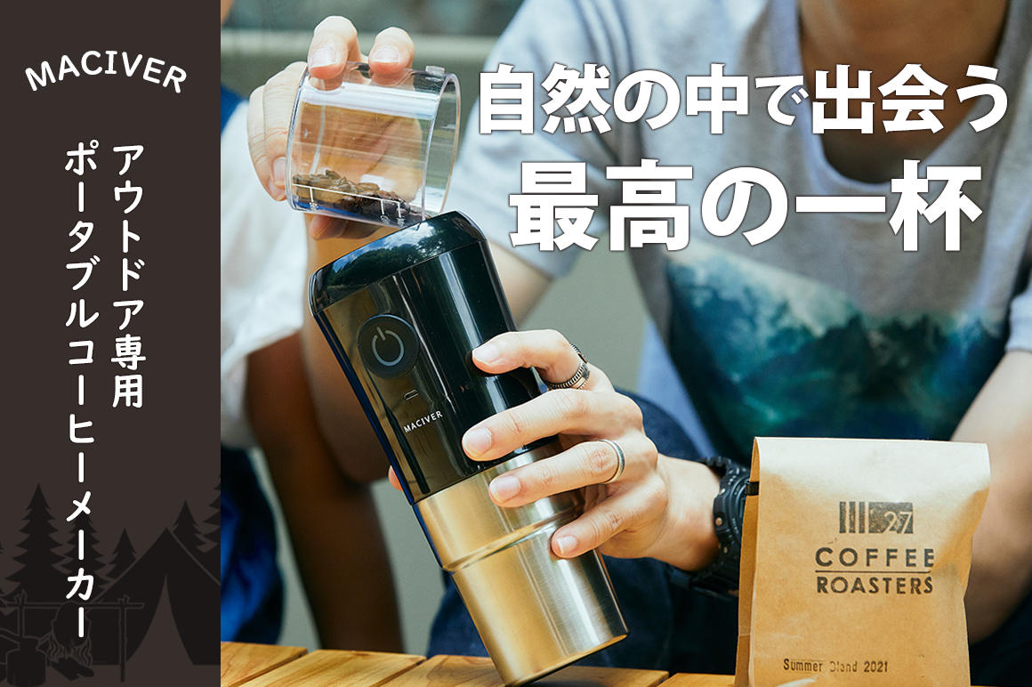 「MACIVER」は電動ミル・フィルター・ドリッパー・タンブラーなどコーヒーを作り、飲むまでの道具が一つになった一体型コーヒーメーカー。一台でどこでもコーヒーが味わえる。