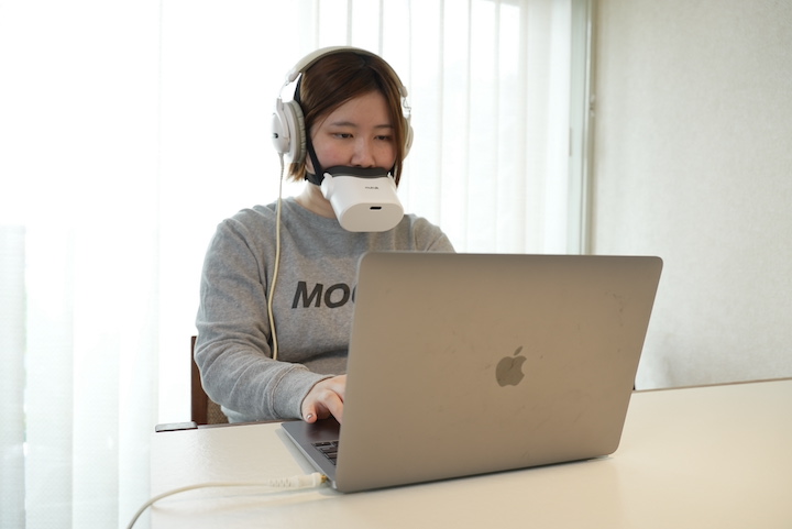 そんなときには、今回ご紹介する防音Bluetoothマイク「mutalk」がおすすめです。話し声が周囲に聞こえにくくなる防音仕様が特徴で、口元を覆ううように使用します。静かなカフェですぐ隣の席に座っていても、話が聞き取れないくらいの消音効果があります。付属のバントを使用すればハンズフリーで使えるので、仕事やゲームをしたり、VRを使用したりするときに便利です。
