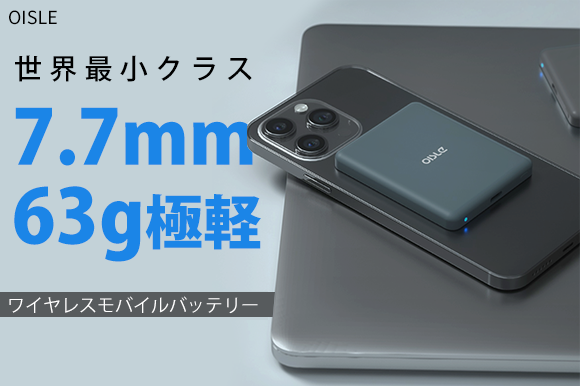 「OISLE MW242Air」は、スマホに貼り付ける薄型のモバイルバッテリー。軽量でワイヤレスだからどこにでも持ち運べる。