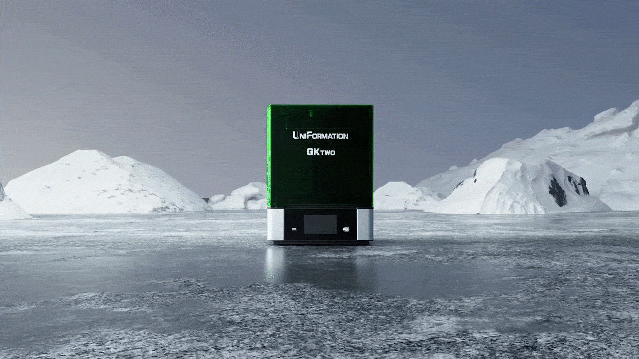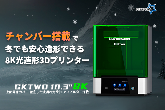 「GKtwo」は、8Kの高解像度で立体物をプリントできる、光造形式の3Dプリンター。