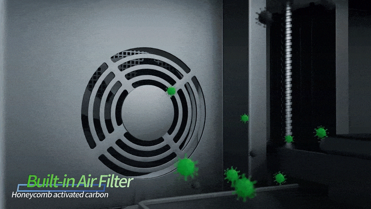 活性炭エアフィルターがついているから、レジンの匂いを気にせずプリントできるだろう。