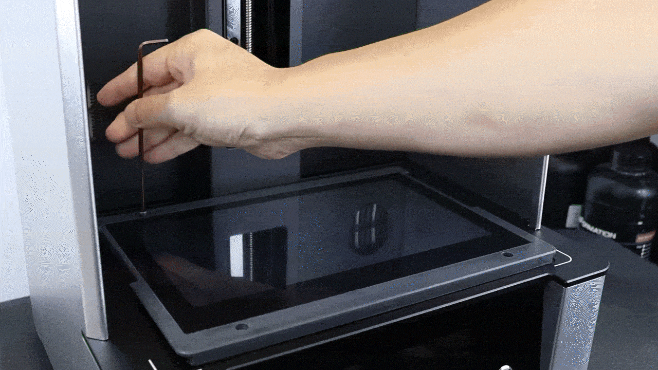 プラットフォーム上面が液面にかからず、レジンバットが底部を覆う構造。レジンの液漏れを防ぎ、節約できる。また、ネジを4つ外すだけで、LCDパネルの交換も簡単にできるという。