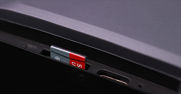 4〜32GBのmicroSDに対応し、写真や動画を保存できる。(microSDカードは別途購入)
