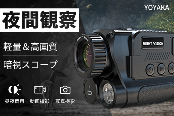 「YOYAKA」は、昼間は望遠鏡として遠くを映し出し、夜間は暗視スコープとして赤外線機能を発揮する。観察だけでなく写真撮影や録画もできるディスプレイ付きのスコープ。