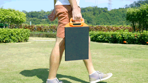 「Solarlol」の重さは2kg。ハンドルがついており、折りたためば片手で持ち運べる。