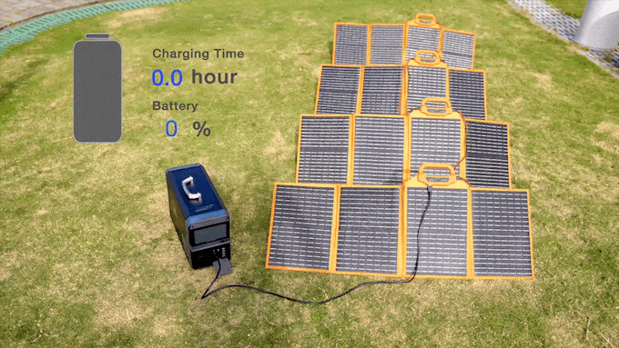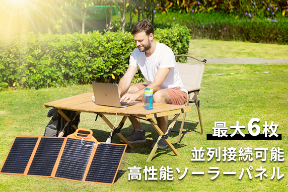 太陽光の強さにもよるが、ソーラーパネル一枚の場合およそ45分でiPhone 14をフル充電できるという。パネルは最大6枚の並列接続ができ、1枚あたりの電力は最大60W、6枚の場合は最大360Wに対応する。