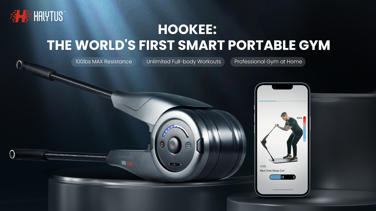 Halytus is raising funds for HooKee: The World's First Smart Portable Gym on Kickstarter! 100lbs MAX Resistance | Unlimited Full-body Workouts | Professional Gym at Home