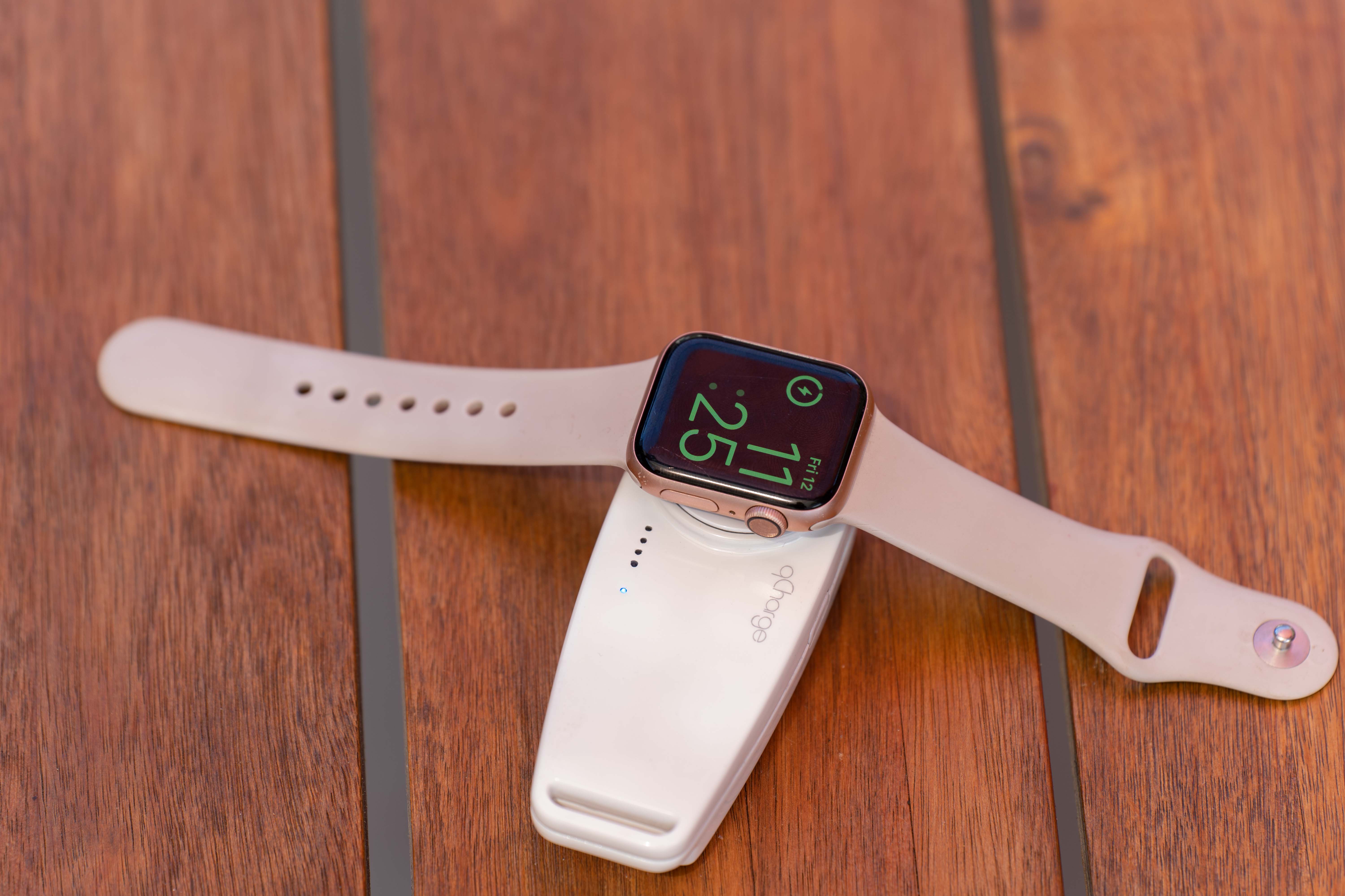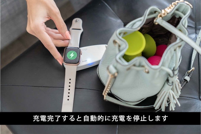 充電は、Apple Watchを上に置くだけ。コードレスだからどこにでも気軽に持ち運べて充電できる。