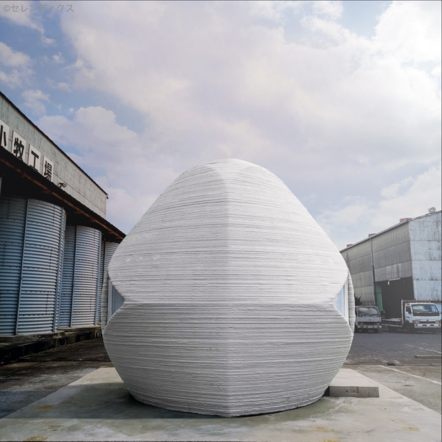 なんと球体の形をしています。球体にすることで鉄筋などの構造体を必要とせず、3Dプリンターだけで建築を試みるプロジェクトです。