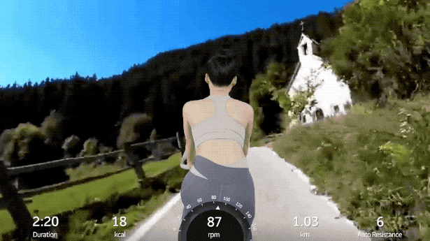 「MERACH 13」は専用アプリと連携して、世界中の映像を見ながらサイクリングできる。アプリはAndroidとiOSに対応している。本体にタブレットは付いていないので、自分のスマホなどを使用するとよいだろう。