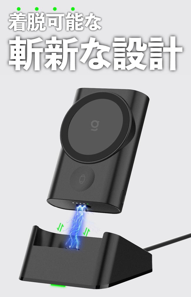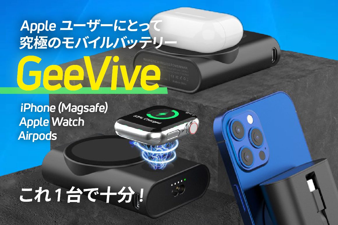 3台のガジェットに同時充電可能で、うち2台はQiでワイヤレス充電できる。マグネット内蔵だから、くっつけるだけで充電ができ、ケーブルがごちゃごちゃすることもなさそう。AppleのiPhoneだけでなく、Apple WatchやAirPodsなどをGeeViveひとつで充電できるため、Apple製品ユーザーは特に重宝するだろう。