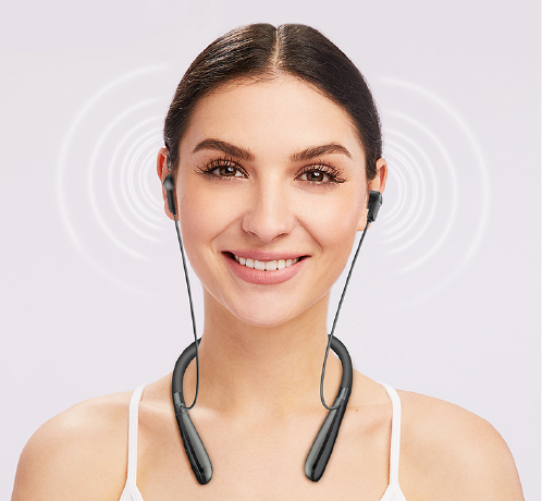 「Z3 Free」はネックバンド型イヤホンのような形の集音器。イヤホンを装着するだけで周囲の音を増幅し日常会話をよりクリアに聞けるそうだ。
