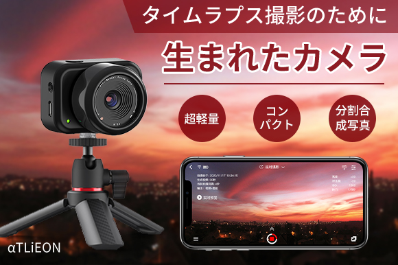 「αTLiEON(アトリーオン)」は、タイムラプス撮影をするために設計されたカメラ。風景が時間経過で切り替わる美しい動画を、手軽に撮影できるのが特徴だ。