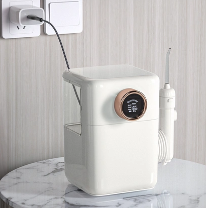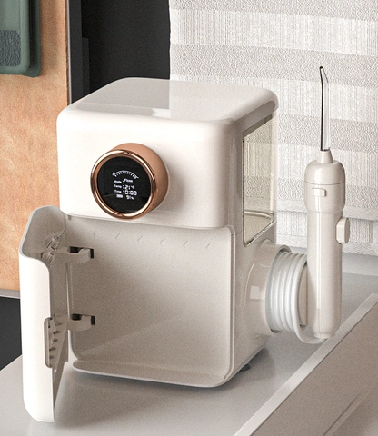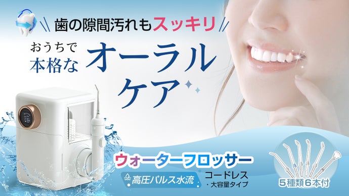 「TAKUYO-ウォーターフロッサー」は、細く鋭い高圧水流で歯と歯の間や歯周ポケットの汚れを洗浄する口腔洗浄機。