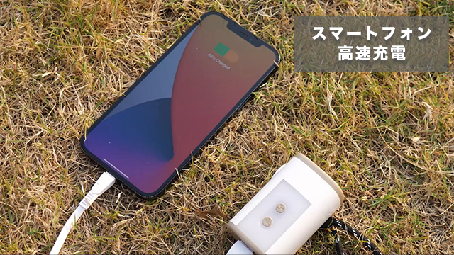 バッテリーは2〜3時間でフル充電でき、60分の連続使用が可能。モバイルバッテリーとしても使用できるので、アウトドアや災害時で「もしも」の時にも活躍する。
