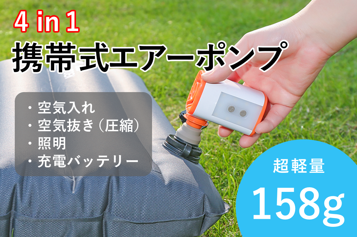 「AM25」は158gとコンパクトな電動エアーポンプ。マットレスや海水浴での浮き輪など、空気を入れる作業が意外と多いアウトドア。3600mAhのバッテリー内蔵でモバイルバッテリーとしても使用可能。LEDライトもついている。アウトドアの強い味方だ。