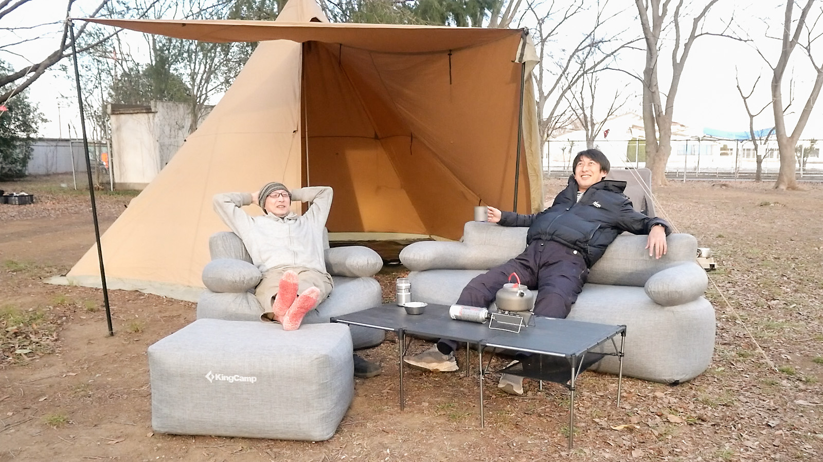 そこでコンパクトに持ち運べるKingCampのエアーソファーを使ってグランピングに挑戦してみました。