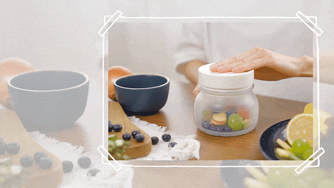 「Flexi Jar」はワンプッシュで真空状態にして食料を保存したり、食事に使えたりするジャー。