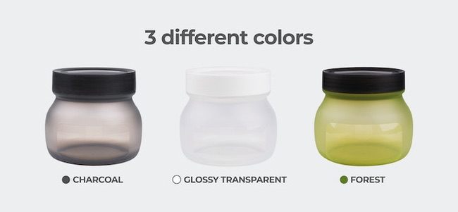 内容量は、スモールが443ml・ミディアムが740ml・ラージが1035ml。それぞれチャコール・半透明の白・フォレストの3色展開だ。