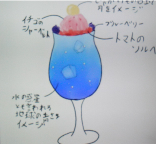 「食」では地球から満月を見るお月見ならぬ、月から「満地球」(Blue Earth)を見る日のための特別メニューを募集。サラダや肉・魚などのメイン料理、デザートまでさまざまな分野の料理が応募されていました。