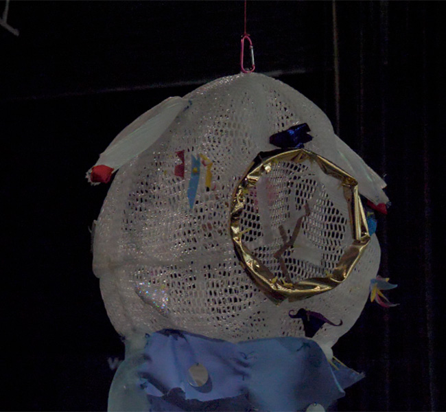 1つ1つデザインが異なるMoonメットに合わせて、ダンスも変わります。例えばうさみみがついているメットは、うさぎのようにジャンプが多めのダンスに。1つ1つのダンスに違いを出しつつも、共通してなんだか不思議なSFちっくな雰囲気になっており、薄暗い展示会場にフィットしていました。