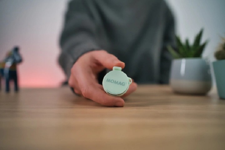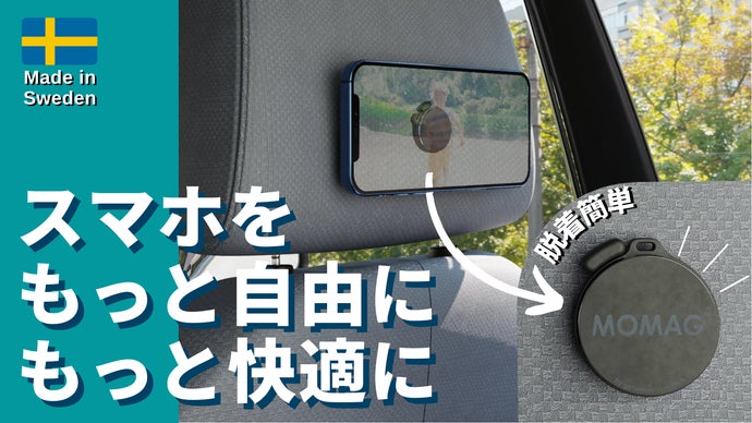 「MoMag」は、クッションや車のヘッドレストなど、布製品にスマートフォンを貼り付けられるマグネットスマホホルダー。布がある場所ならどこでも貼り付けられるため、外出中の動画や写真撮影、家でのリラックスタイムなどいろいろなシーンで使えそうだ。