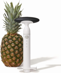 • オランダのブランド「Vacu Vin」が開発したパイナップルスライサー&ウェッジャー。筒状の先端を、パイナップルの芯に当てて回しながら下ろしていきます。芯を取りつつ、スライサーで輪切りにカットすることができます。また付属のプラスチック刃を使って、一口サイズへカットすることも可能です。