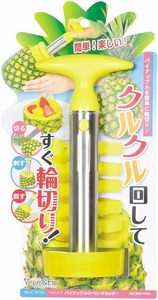 • パイナップルの葉っぱ部分をカットして、中央部分に本体を刺してクルクル回すだけで簡単に皮が剥け、すぐに輪切りまでしてくれる優れもの。きれいに芯もくり抜けるため、皮を器として盛りつけにも使えます。食器洗い乾燥機使用不可。