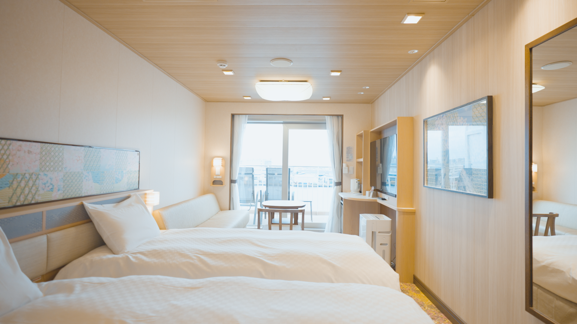 全18タイプの客室には、リーズナブルなシングルルームや相部屋の他、長距離フェリー初となる和洋室のコネクティングルームやペットと泊まれるデラックスルームも完備。特に、和洋2タイプの客室を繋げられるコネクティングルームは、各世代のニーズに応えて快適な滞在を約束してくれる。