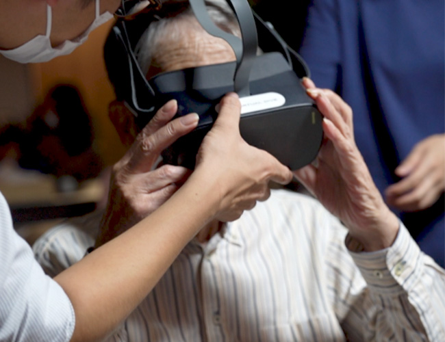 「360VR+M」というサービスで、介護施設やデイサービスの人たちに「その場にいる」体験をしてもらうことが目的だ。介護レクとVRを組み合わせることで、心と体のリハビリテーションにつながる効果が期待される。