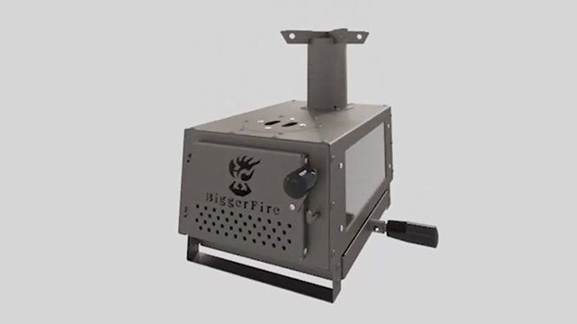 「Bigger Fire」は、縦20 × 横28.5 × 高さ18cmのコンパクト設計で、テーブルにも置きやすいミニサイズの薪ストーブだ。