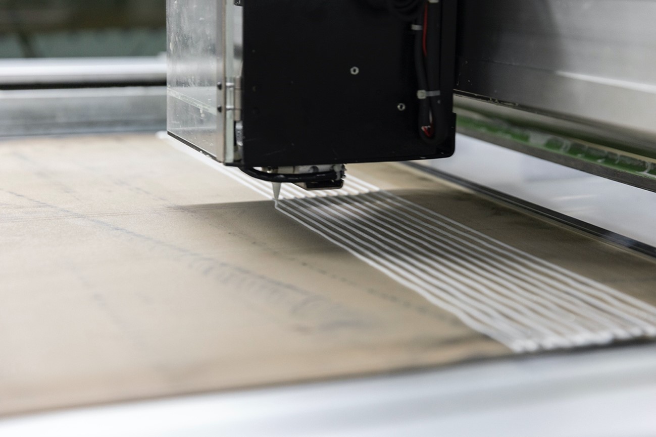そんな開発の苦労を笑い話にして教えてくれる椙原さん。それでも実験を続け、ついに樹脂を使うことで布の上に密着性や柔軟性を上げることができることを発見。この精度を高めていけば交換時期になったブランケットを復活できるのではないかという見通しがついた。その後は、装置にブランケットを装着し、均一に樹脂を伸ばすための開発が進んだという。