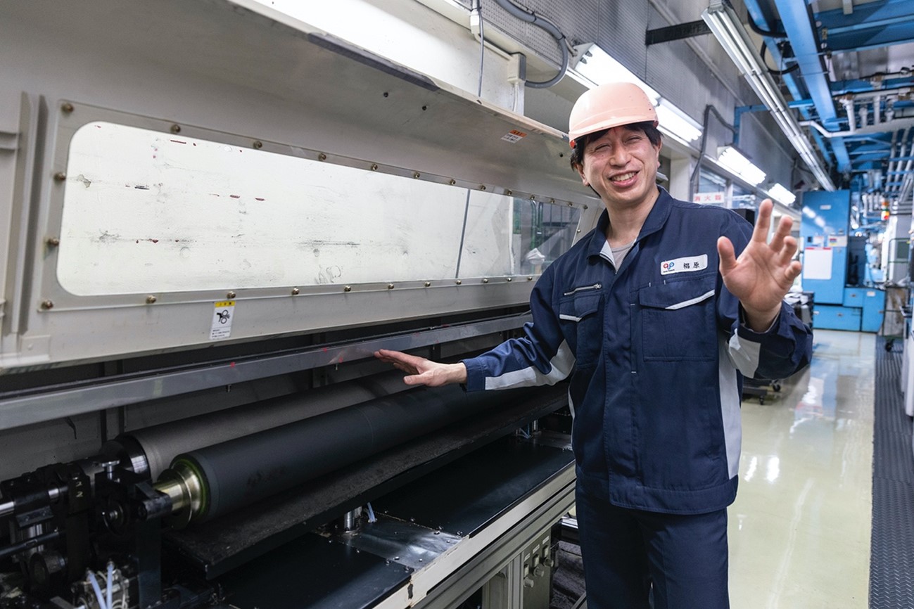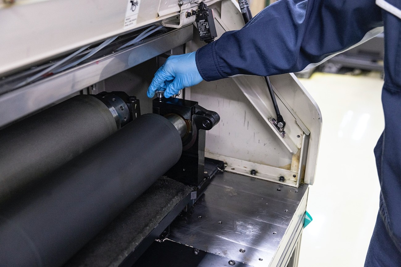 「以前は、ゴム製ローラーが古くなると、メーカーさんに出して巻き替えてもらっていました。ローラーを再生することによって廃棄物を減らすこともできますし、替えに出すための輸送にかかるCO2の削減の効果もあります」