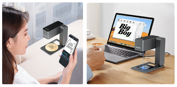「MR.CARVE C1」の彫刻範囲は80 × 80 mmで、レーザーパワーは5W。ワンタッチで高さやピントを自動調整してくれるので、初心者でも扱いやすい。また、プレビュー機能で予定画像の大きさや位置を確認できるのも便利。