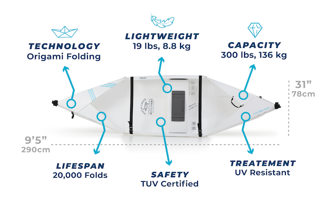 「MyCanoe SOLO 2」は、折り紙のように組み立てが可能なカヌーで、軽量で持ち運び可能。