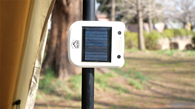 1点だけ注意が必要なのが、充電は太陽光のみということ。USBケーブルなどで充電できないので、夜からのキャンプの際には充電されているか心配になります。せめてバッテリー残量を確認できるインジケーターは付けて欲しかったです。