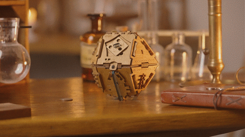 特定のパーツが回転したり、スライドしたりする仕組みで、箱を開けるためには決められた正しい順番でパズルを解いていく必要がある。けっして力ずくではなく、論理的な思考が必要。表面に描かれた記号や文字などのヒントを頼りにパズルを解いていくと、細かくパーツが外れる仕様。パーツが解かれていくごとに、核心に迫っていくような高揚感が味わえそうだ。