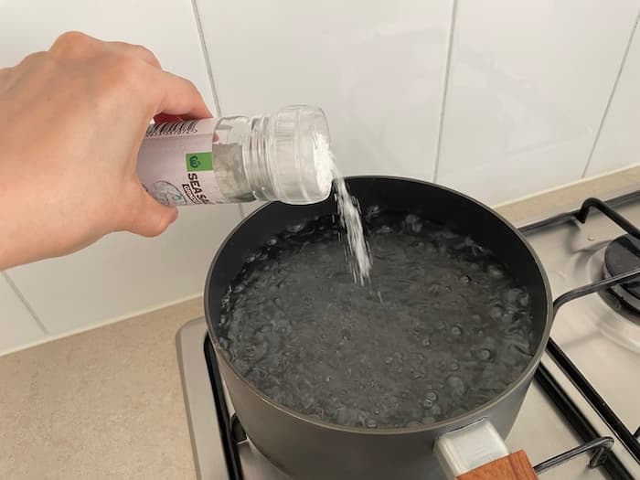 ①鍋に湯を沸かして塩を入れる