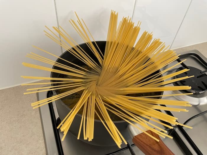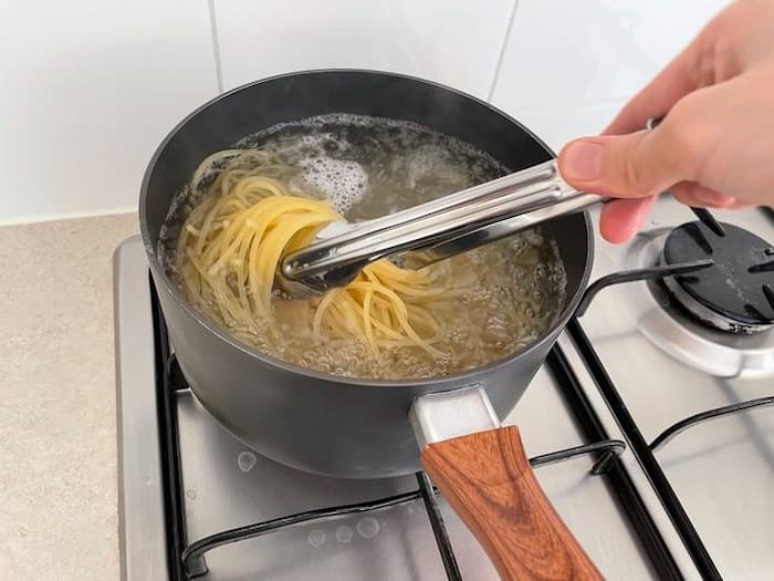 水が沸騰してからパスタを入れる